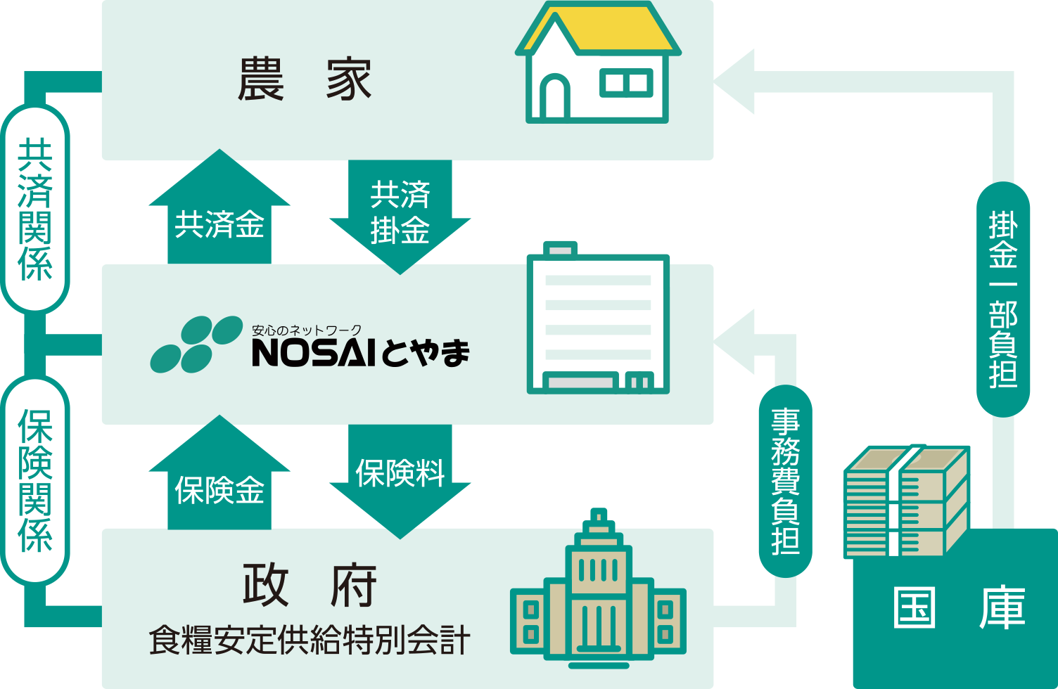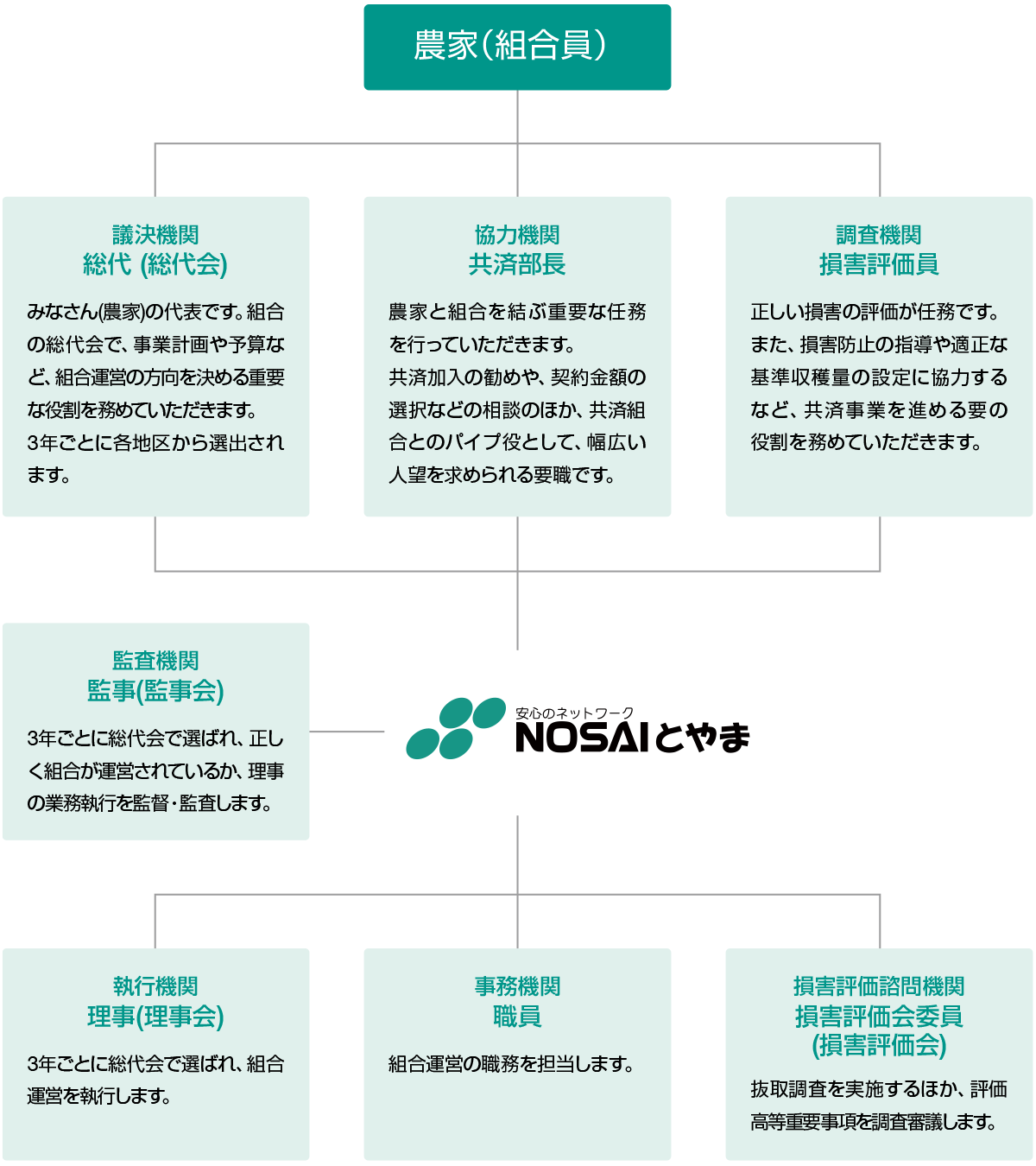 組合はいわゆる元受機関で、農家との間に共済の引受け(契約)をし、直接の責任を負う事業主体です。